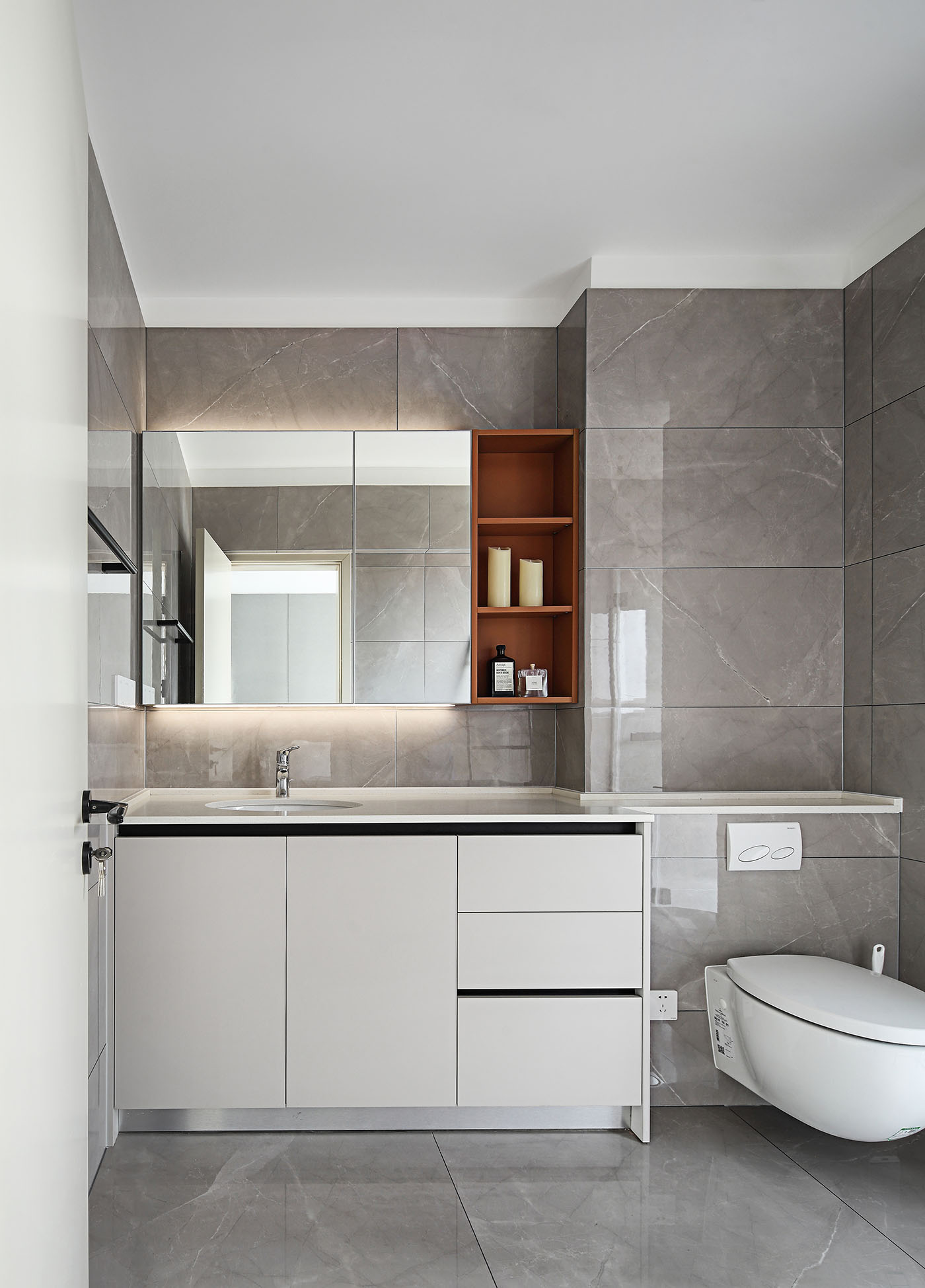 ■ 主要材料:粉末喷涂不锈钢,定制柜体,大理石瓷砖,硬包