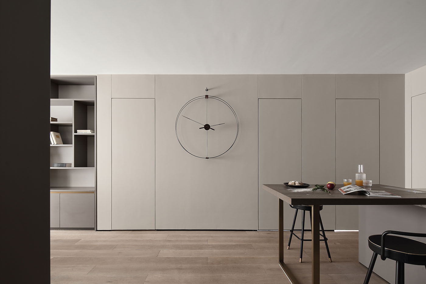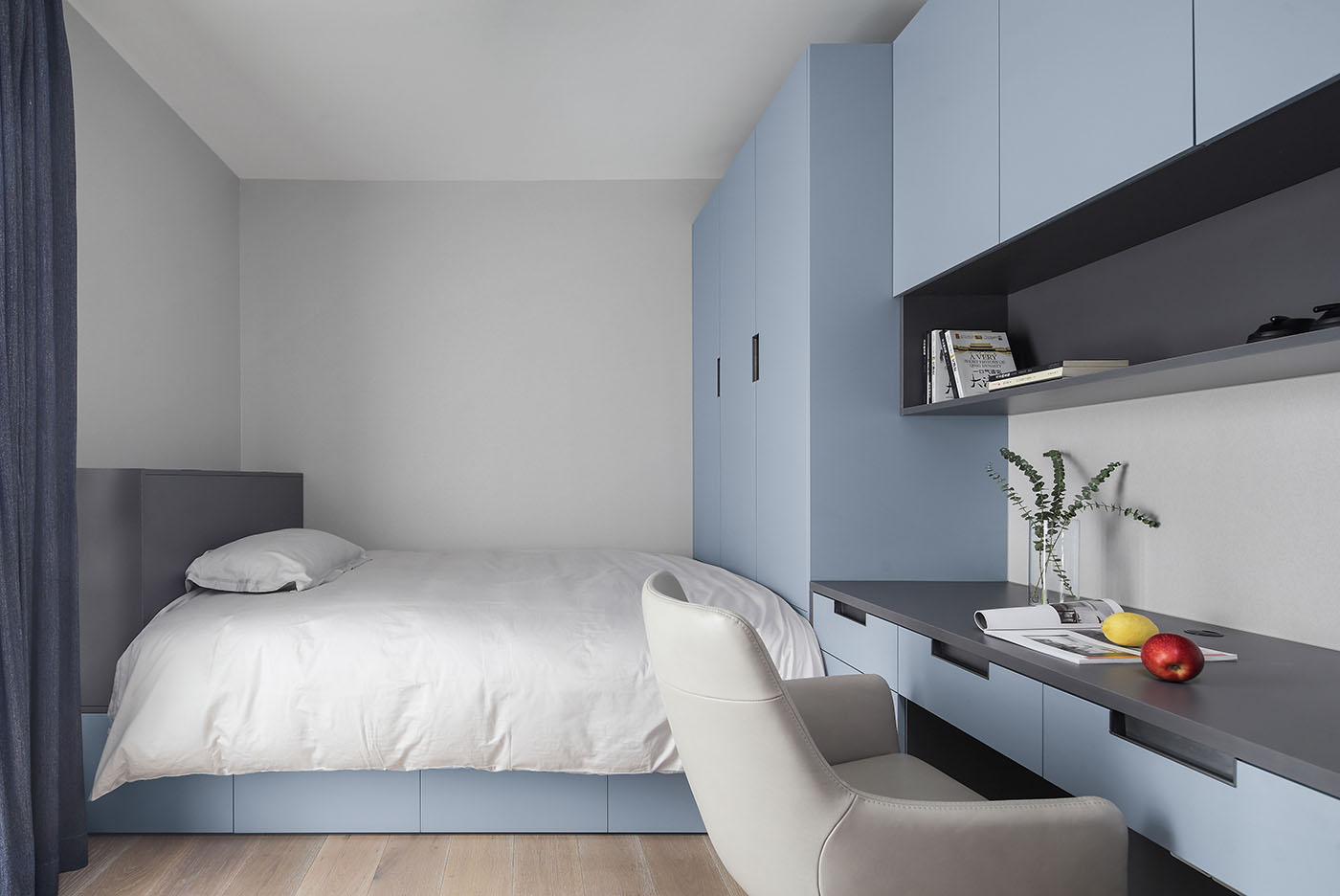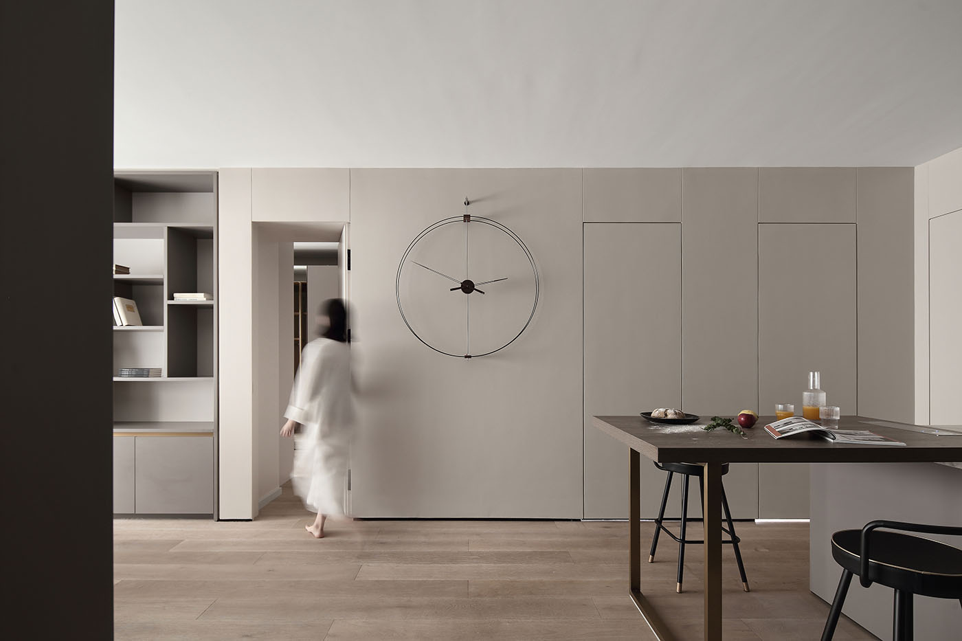 设计的本质是解决问题,而好的设计不仅要有沟通力同时更要能打动人;业主一家圆润温和,尊重知识重视亲子关系,稳定的生活状态让空间概念变得明朗;空间布局保留了两个卧室,将原先的书房改为衣帽间,取消客厅与阳光相邻的位置作为亲子活动区,将原有北阳台并入主卫扩大洗浴空间,整个活动空间无任何视线遮挡方便一家人的互动沟通。