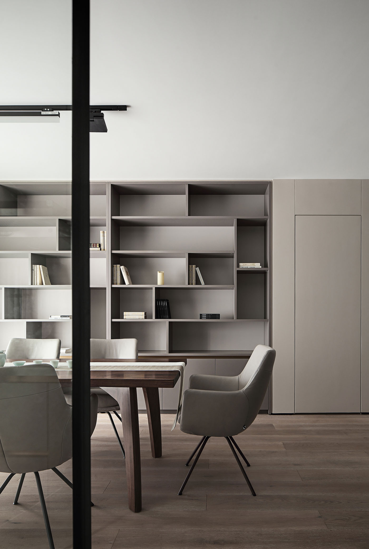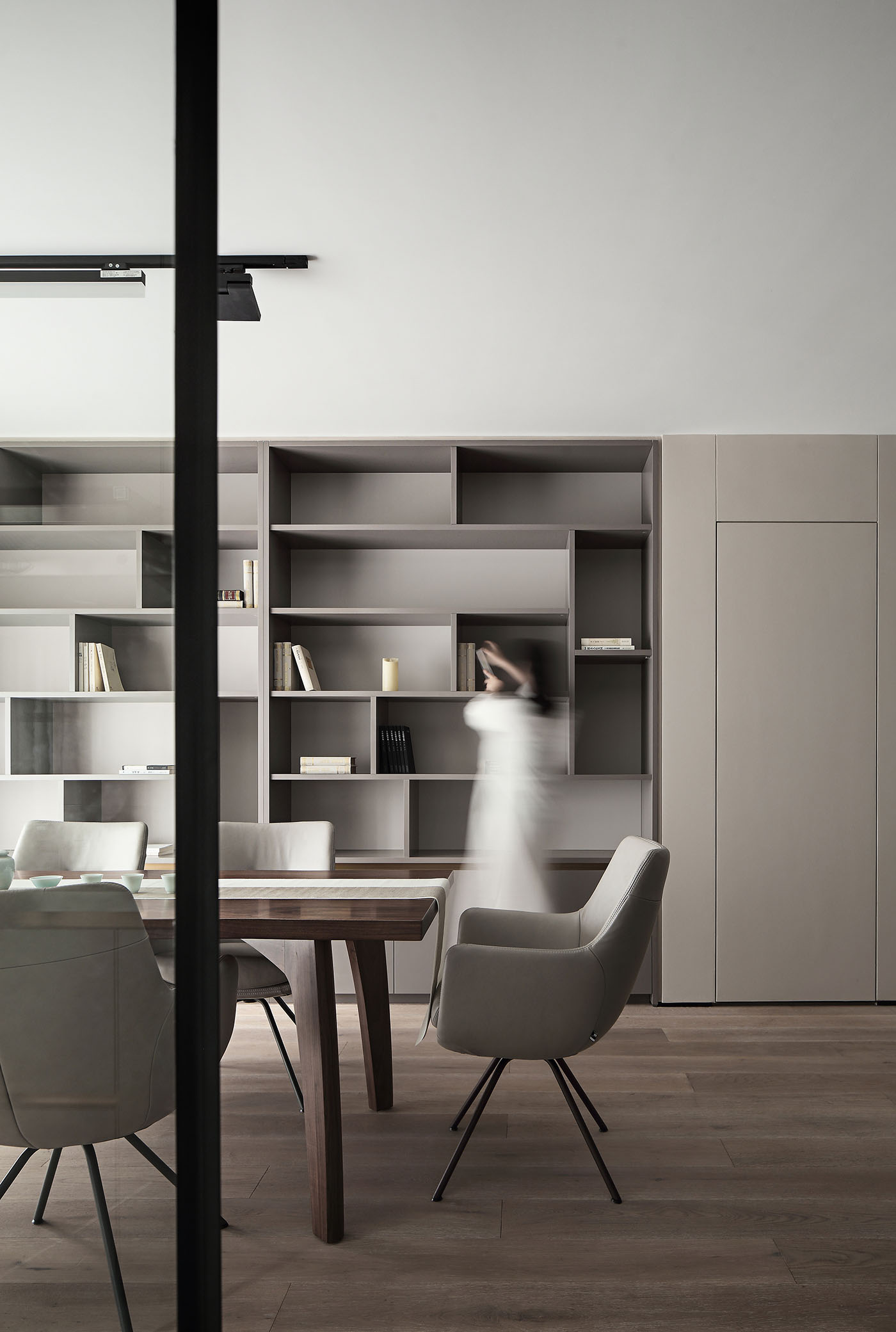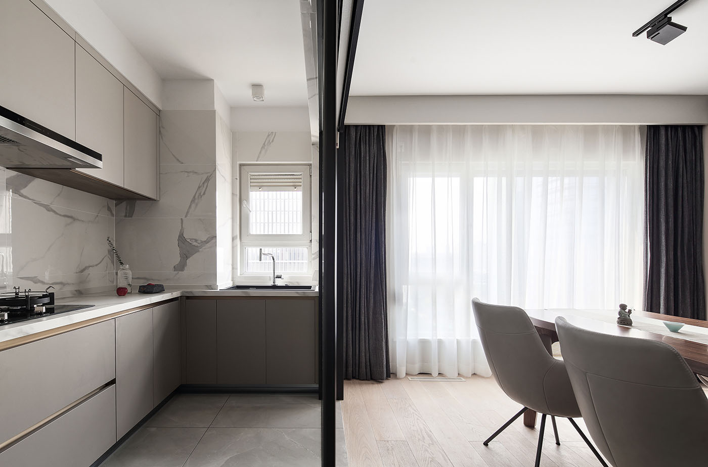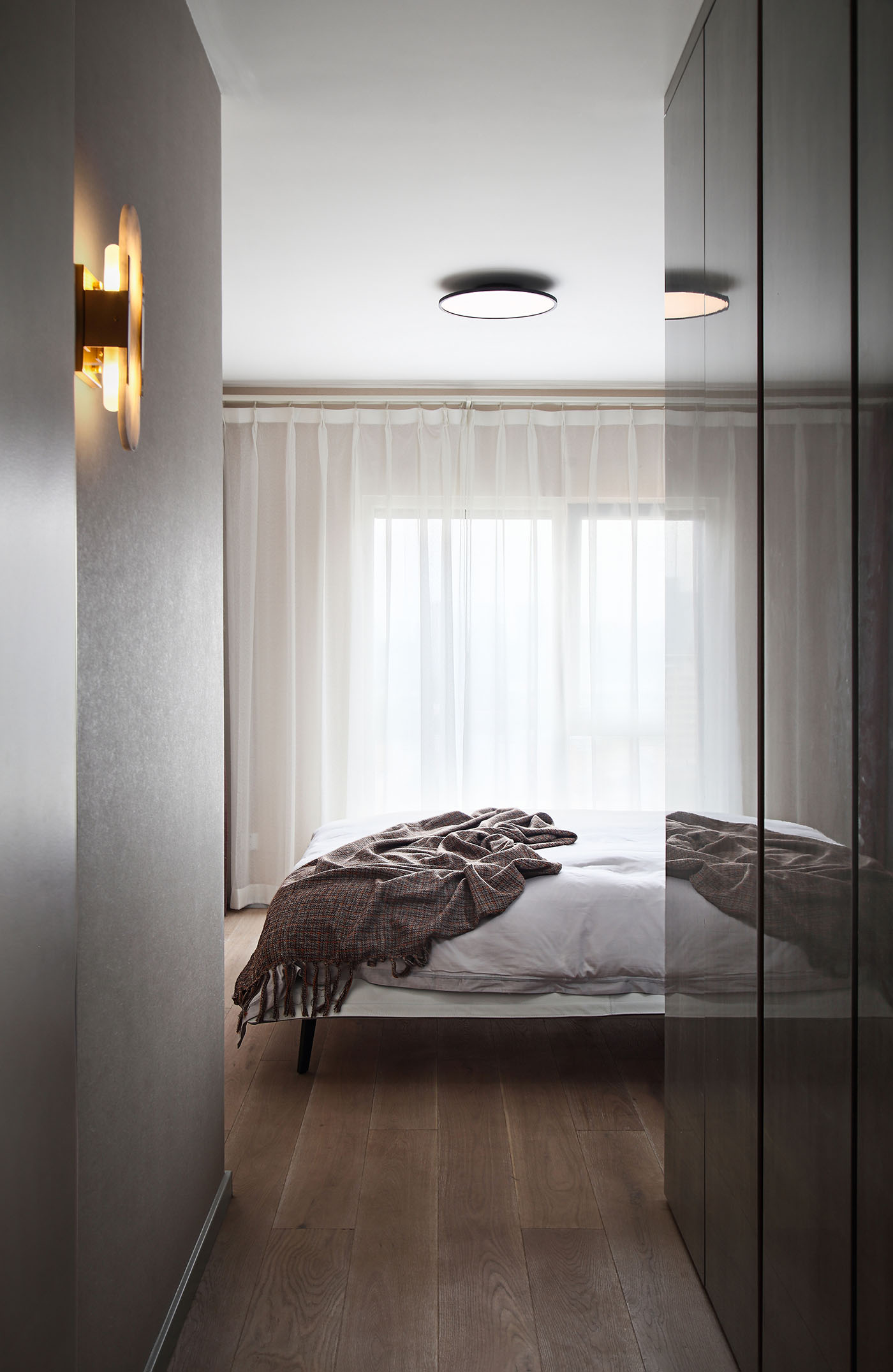 设计的本质是解决问题,而好的设计不仅要有沟通力同时更要能打动人;业主一家圆润温和,尊重知识重视亲子关系,稳定的生活状态让空间概念变得明朗;空间布局保留了两个卧室,将原先的书房改为衣帽间,取消客厅与阳光相邻的位置作为亲子活动区,将原有北阳台并入主卫扩大洗浴空间,整个活动空间无任何视线遮挡方便一家人的互动沟通。
