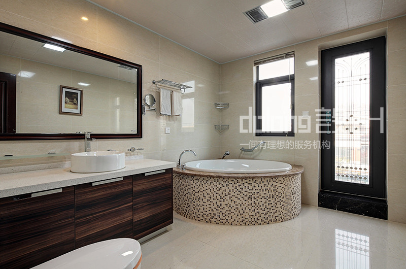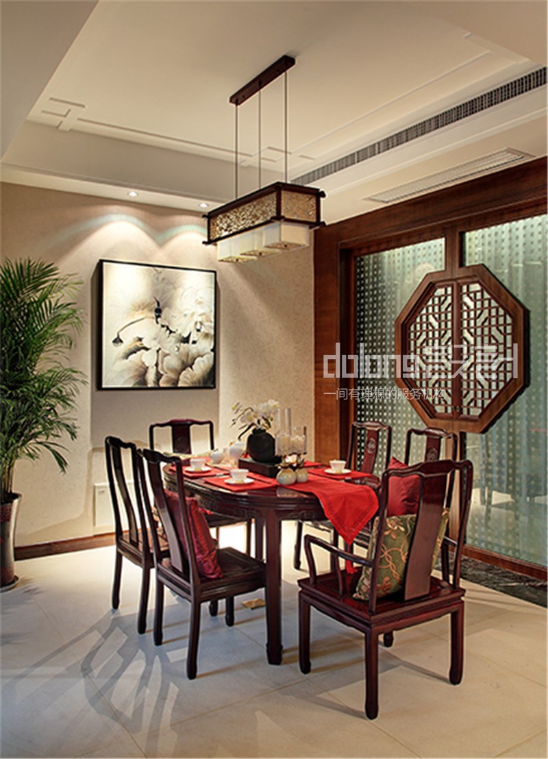 主要材料:艺术瓷砖、黑白根大理石、实木花雕、柚木饰面、夹丝玻璃等...