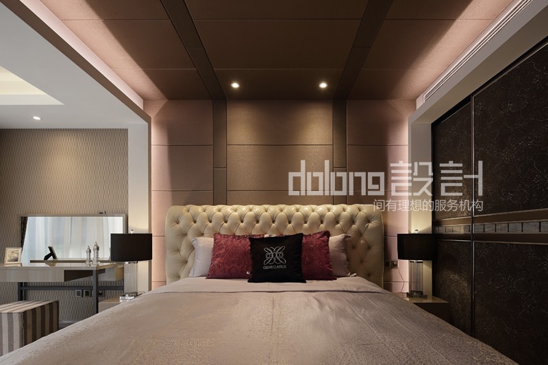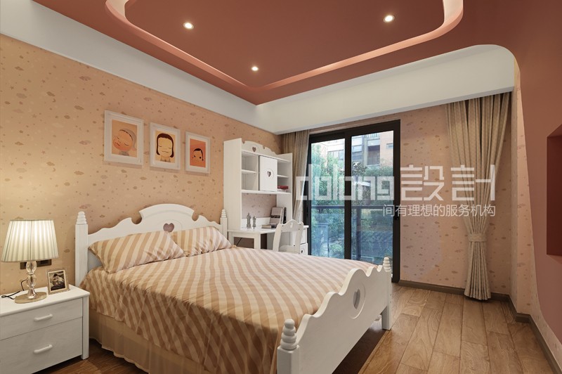 进入二层完全属于私密的睡卧空间,粉色的女儿房通过连接墙地的造型包裹一体,浓浓的童趣充满空间。主人房则是融合了更衣室,休闲区,睡卧区和卫生间的超大完善空间,让主人在这里独享自己的一番天地
