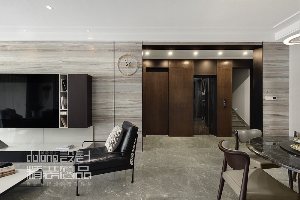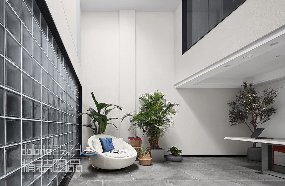 ▼会生活的人,必须是会享受的人。首先在功能方面,负一楼的影音厅和负二楼的休闲区,为主人的好客提供了尽情释放的去处——这是一个自由流动的共享空间,尺度清切宜人,是每一位客人都会有宾至如归之感。根据和业主的沟通,考虑到负一楼和负二的采光不足,房间也较多,将健身房一面设计了玻璃墙,负二楼车库的墙壁改为玻璃砖,引进天井的光线,增加了室内采光性。